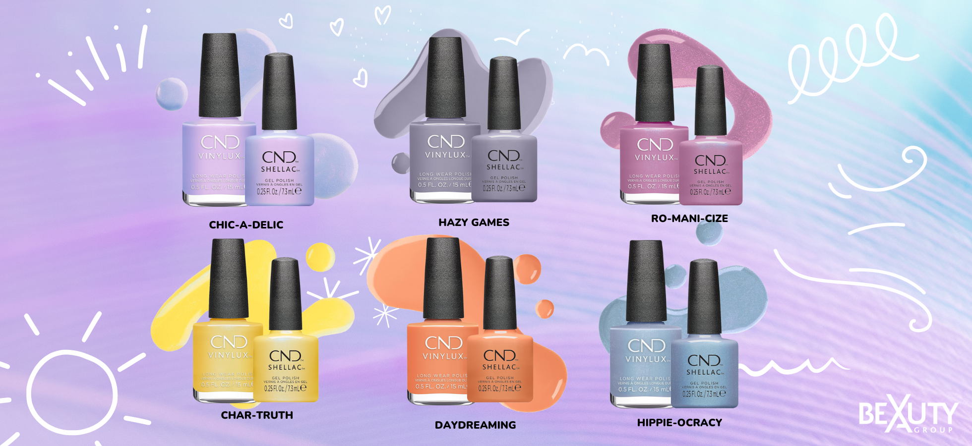 A CND izgatottan mutatja be legújabb kollekcióját, mely az Across The Mani-Verse nevet viseli. Kedélyjavító színpalettája pszichedelikus motívumokon keresztül kínál varázslatos utazást. Hat kaleidoszkopikus árnyalat egy alternatív valóság előtt tiszteleg, miközben a tavasz esszenciáját testesíti meg élénk pasztellszíneivel, melyeket gyönyörű gyöngyházhatással fokoztak!